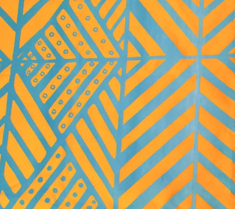 My Jilamara is patterns of things that live on the land and the sea. Triangles can mean sugarbag; triangles with dots can be honey bee. The full lines they represent a creek or a river. The lines and dot are sort of like a snake. Dots are waterholes or people. That’s all in my design.”