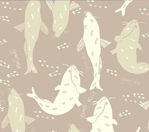 “This design is about Nail fish – or Garrjala in Alawa language. It's also known as Balan Balang. You can find it in the billabong in Minyerri. It has what looks like a little beard, and it also has a nail coming from its back. It’s really sharp and dangerous, with poison on the tip. If it stings you, you’ll get so sore. If we get stung, we use the leaves from the white bark tree (break the leaf off and chew it) to put on the wound.