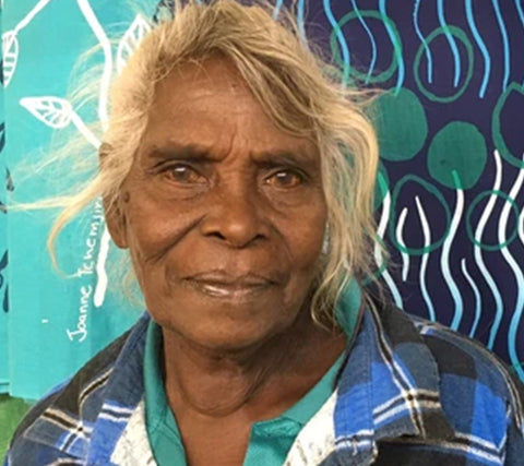 Leonie was Wangka woman from Wadeye, one of Australia’s largest Aboriginal communities, located about 420km South West of Darwin. Leonie passed away in late 2017. Leonie’s language was Mari Amu. She was mother of five, and aunty and granny to many! Leonie loved painting and drawing, and did art to relax.
